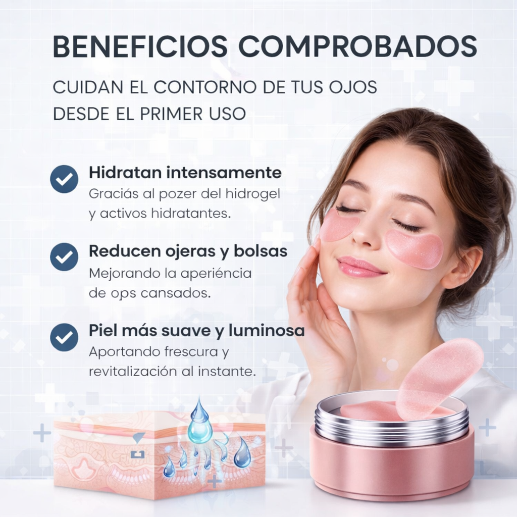 Coloca cuidadosamente los parches bajo los ojos, adaptándolos al contorno de la piel.